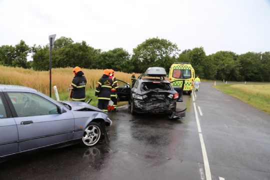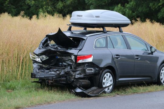 "En tysk personbil kørte i retning fra Allinge mod Hasle, og da den skulle svinge til højre ned mod Vang, blev den påkørt bagfra af en dansk bil.