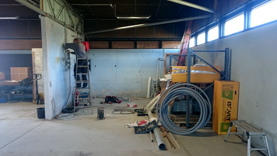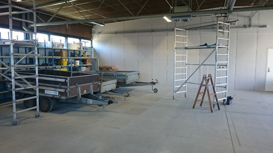 Bygningen på Sandemandsvej er en selvbærende hal, så derfor har det været muligt at rive alle vægge ned og bygge helt nyt indvendig.