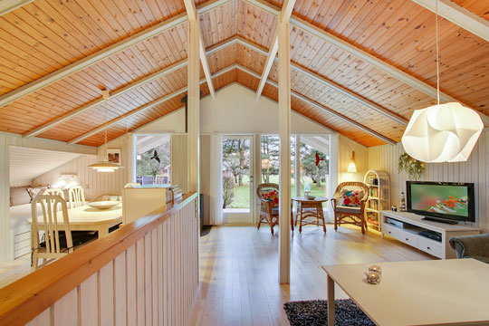 Huset er bygget med træfacade og 69 kvadratmeter er godt indrettet, så man også kan have overnattende gæster. Med til huset hører en 2.500 kvadratmeter stor grund med flere opvoksede træer.