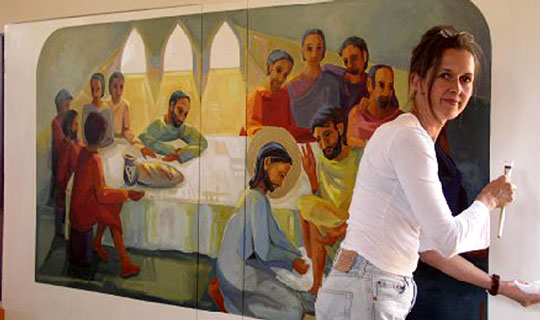Agnete K. Petersen har også malet en midlertidig altertavle til Skt. Hans Kirke, Odense, i sommeren 2010.