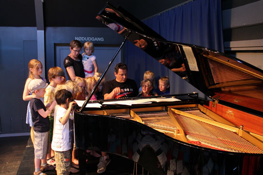 ”Først fik børnene lov at se nærmere på instrumenterne – og det var især spændende at kigge ned i flyglet. Herefter spillede duoen forskellige ”dyr” som børnene så skulle gætte