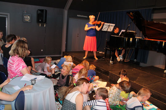 Christina Åstrand spillede violin mens børnene tegnede hilsner, som skulle sendes med ballon ud i verden.FORKERTE FAKTA? Bornholm.nu skal ikke offentliggøre faktuelle fejl. Hvis der er noget i denne artikel, du føler er forkert, skal du kontakte os på mail: red@bornholm.nu.