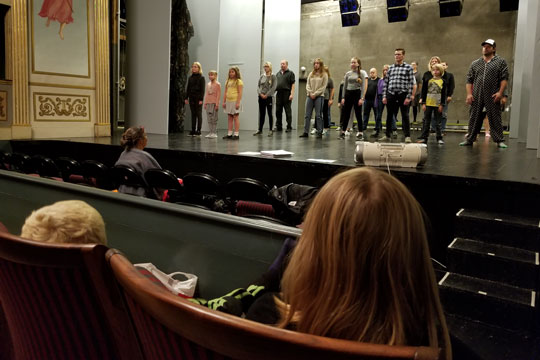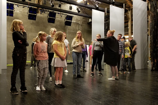 Stykkets instruktør Lotte Finne gav de mange unge skuespillere råd og vejledning om, hvordan de skal agere. Ikke bare i stykket, men også i forhold til publikum, som vil sidde i salen på Rønne Theater, når stykket opføres.
