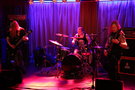 Stalker spillede desperat og svedig death metal.Inden Dirt Forge gik på scenen i Raschs Pakhuz, spillede supportbandet Stalker og varmede publikums nakkemuskler grundigt op.