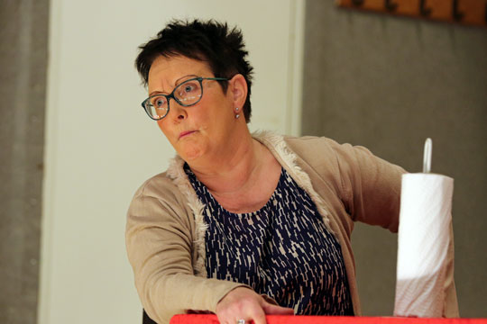 Mens generalprøven i salen nærmede sig sin afslutning, herskede der travheld i køkkenet. Aftenens forestilling indledes nemlig med aftensmad bestående af buffet med oksesteg og flæskesteg med tilbehør i form af forskellige kartofler og salater.