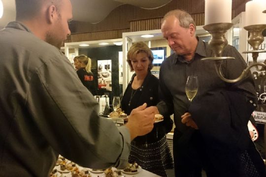 Inden filmen blev der serveret lækker tapas og champagne for de omkring 125 gæster, hvoraf de fleste var i festtøj – og nogle af mændene i smoking i bedste Agent 007-stil.
