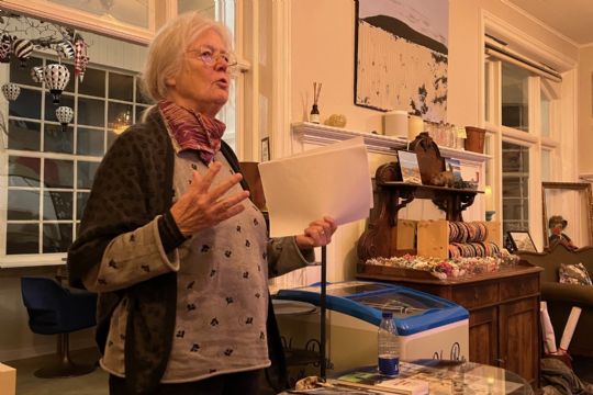 Jette Hvidtfeldt fortæller om sine mange samtaler med Flemming Sloth Andersen. Foto: Jan Eskildsen
