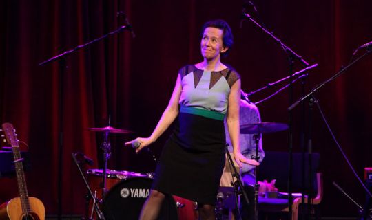 Anne Dorte Michelsen med Weekendfædrene gav lørdag aften en intim koncert i Musikhuzet i Rønne.