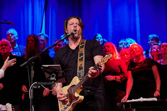 Det blev naturligvis en aften med masser af musik af Kim Larsen, udført af forskellige solister, blandt andre aftenens vært Simon Sandbye. Solisterne blev bakket op af band og Gospelkoret AmaZing. Mellem numrene var der anekdoter og historiefortælling af Torben Severinsen.
