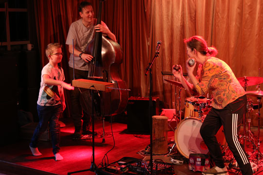 Både børn og voksne blev inddraget i den groovy musik, og den karismatiske trio spredte deres livsglæde og energi til hele Pakhuzet.