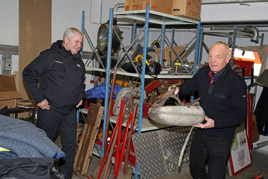 De mange gamle ting står rundt omkring, og på Falcks station i Rønne opbevares mange af tingene.