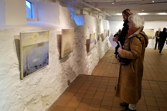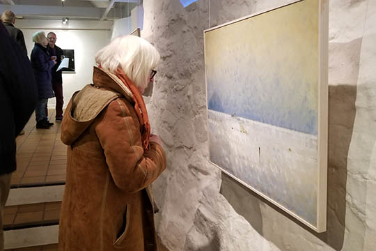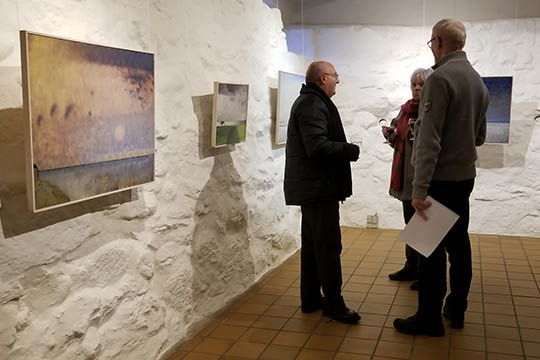 Der var også tid til at hilse på bekendte, som også var mødt frem til ferniseringen på årets første udstilling på Svanekegaarden.- Dan Thuesen er dus med naturen og skildrer landskabet omkring Højer med dets røde solnedgange, glitrende grønne forårsfarver, vinterblege blåtoner, sort sol.