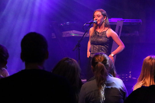 Knap 15-årige Zilla Julie Finne underholdt med flotte sangnumre.Zilla varmede op til WafandeSom opvarmning til koncerten med Wafande sang den knap 15-årige Zilla Julie Finne fra Rønne.