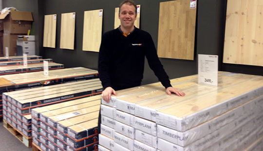 I trægulvsafdelingen kan man for eksempel få et rigtigt flot Timberman fyrlamelplankegulv til kun 279 kr. pr. kvadratmeter, hvor det ellers koster 349 kr. pr. kvadratmeter,” fortæller Peter Kofoed.