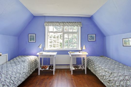 På 1. sal er lille trapperepos og to soveværelser med plankegulv og skabe, det ene med den skønneste havudsigt. Desuden er der et lille depotrum samt adgang til øverste loft.