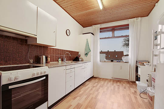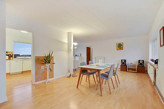 Boligen på øverste sal blev under renoveringen forsynet med nye parketgulve og lofter. Der er badeværelse, et depot samt tre værelser, hvoraf det ene har en tilstødende garderobe. Dertil kommer en større vinkelstue i åben forbindelse med et køkken med udsigt over byens tage og havet.