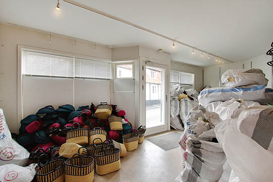 Mod gaden er der et rummeligt butikslokale med toilet, køkken og et stort lager.