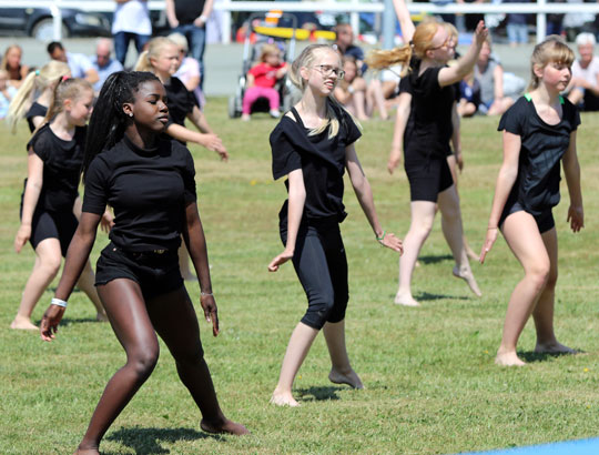 "Ulykken" trak mange nysgerrige.DGI gymnastikhold gav en flot opvisning med både gymnastik og flotte spring.
