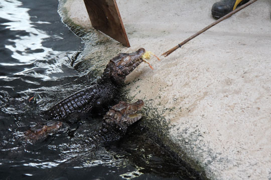 Udstillingerne er vinterlukkede, så det hele foregår hos krokodillerne.