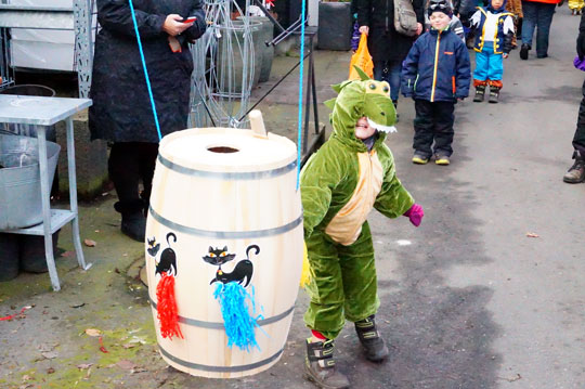 De store børn – dem over 5 år - slog hårdt og godt på deres tønde og det varede derfor ikke længe før den gik i stykker.