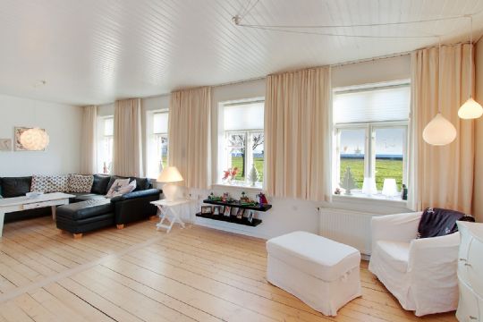Huset indeholder entre, badeværelse med bruseniche, stor og hyggelig opholdsstue med brændeovnen centralt placeret. I opholdsstuen er der masser af lys, pænt trægulv og ikke mindst en skøn udsigt til havet.