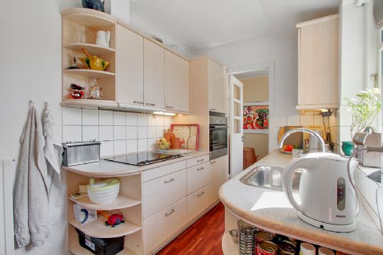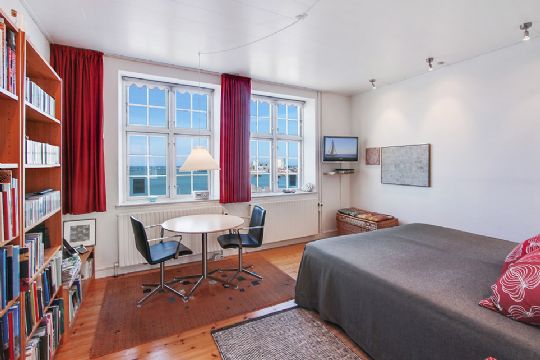 Boligarealet er på 112 kvadratmeter, og huset indeholder spisestue med trægulv samt kig til både havnen og havet, stue med samme flotte trægulv og direkte kig ud over havnen, badeværelse, køkken med mulighed for to spisepladser og bryggers.