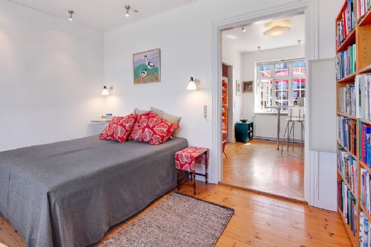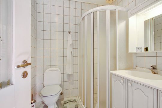 På 1. sal er stort kvistværelse med en udsigt, soveværelse med skabsvæg og nyt badeværelse med siddebadekar.