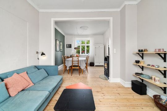 Huset, som oprindeligt er opført i 1918, har masser af sjæl med fine detaljer såsom stuklofter og dybe vindueskarme, som man kan sidde i.