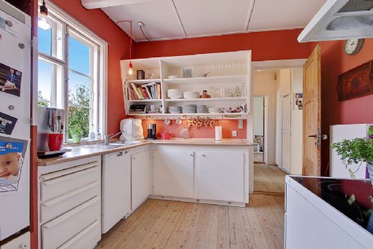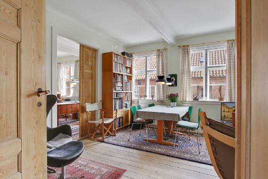 Værelser og stuer er alle med trægulve.