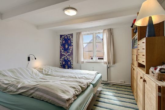På 1. sal er repos med stor skabsvæg og skydedøre, værelse, kvistværelse og stort soveværelse.