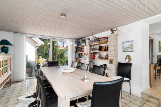 I 2000 er der opført et dejligt anneks i forlængelse af boligen, så Vindruehuset har 161 kvadratmeter at bidrage med. Udenfor findes den ugenerede, velholdte gårdhave samt garage og værksted.