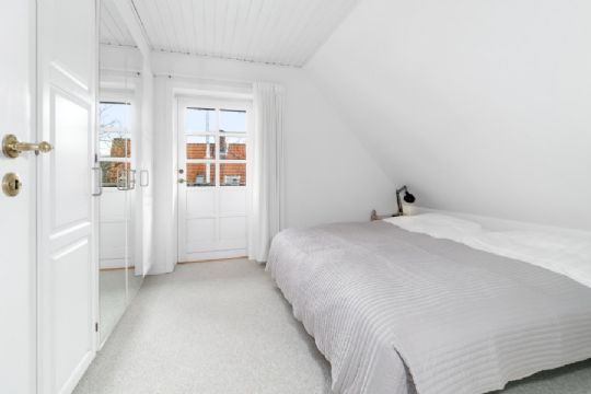 På førstesalen er tre gode værelser, badeværelse og en altan med udsigt til havnen.