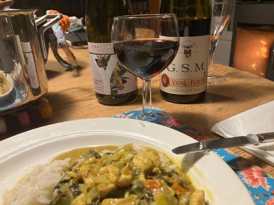 Sauvignon Blanc fra New Zealand som aperitif og GSM fra Sydfrankrig til kylling i karry viste sig at være nogle vellykkede valg.