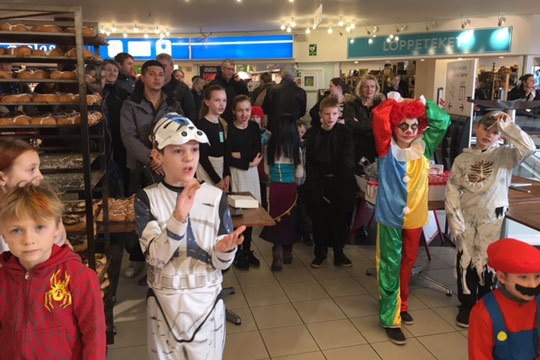Der var fyldt med en masse glade mennesker og børnene var klædt ud til lejligheden.
