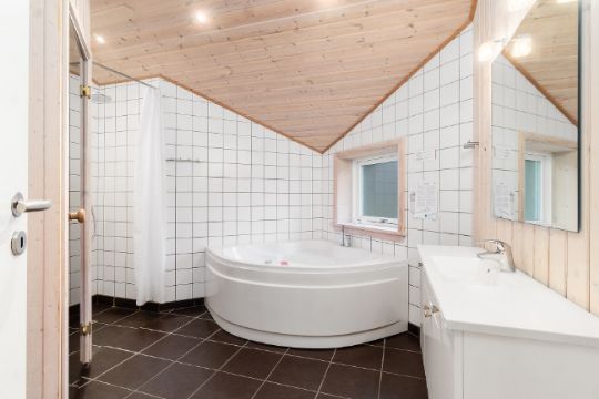 Huset har hele tre værelser, et lækkert badeværelse med spa og brus, som tilfører huset et strejf af luksus. Endelig er der et praktisk bryggers med plads til vaskefaciliteter.