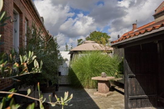 Gårdhaven har terrasse med pavillon og gænge til gaden.