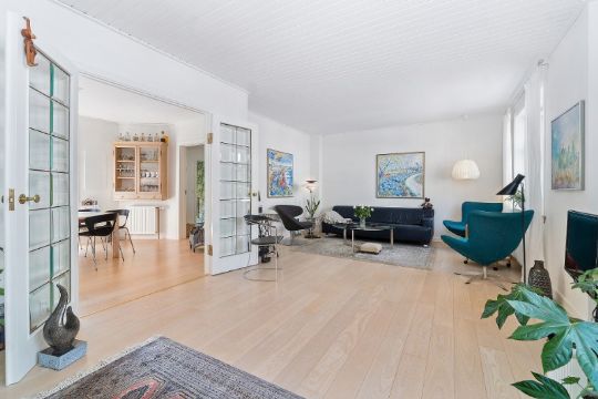 I 2011 var det nemlig alt fra køkken til badeværelse, gulve, vinduer, elinstallationer, VVS og meget mere, der enten blev opdateret eller udskiftet, så det i dag fremtræder i fornemste stand. Den klassiske ejendom fik en moderne opgradering, men der samtidig tænkt over den oprindelige stil med franske døre, kvalitetsmaterialer samt fritlagte bjælker i kælderen.