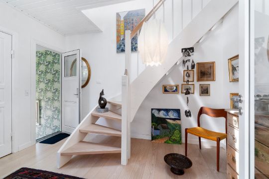 På førstesalen er tre værelser med en fornuftig størrelse og badeværelse med gulvvarme.