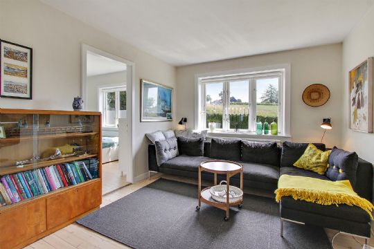 På førstesalen er der lys stue med udsigt til marker og dobbeltdøre, der åbner op til en fransk altan. Her er også mulighed for opdeling til to værelser.