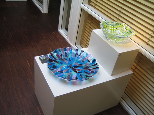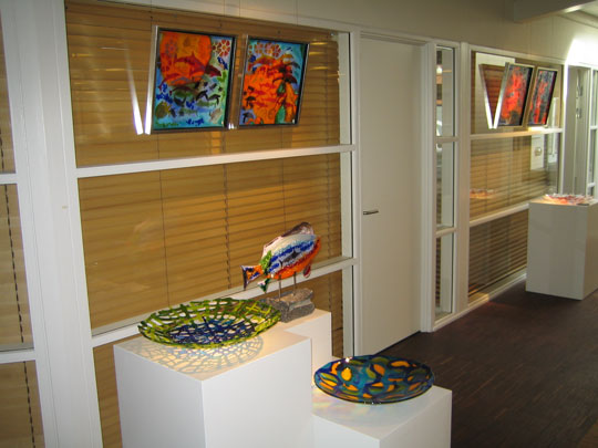 Tilflytteren Lilli Carlsen fra Lilli's Glasdesign udstiller i Sydbank på Lille Torv i Rønne de næste tre måneder.
