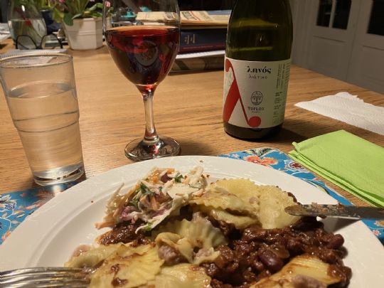 I glasset kan vinen minde om en mørk rosé, men det er altså en lys rødvin, med en fristende, lidt ubestemmelig aroma. Vinen smager udmærket, ikke så tør som forventet, med lidt sødme men også lidt syrlighed i eftersmagen.