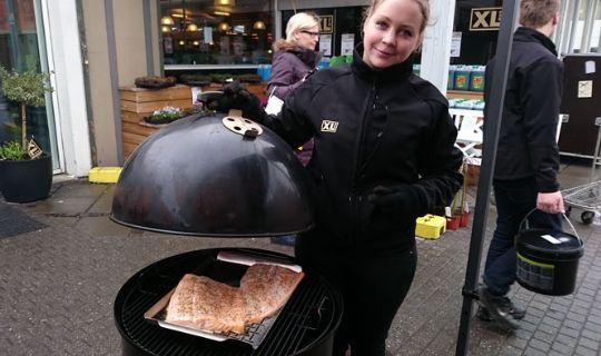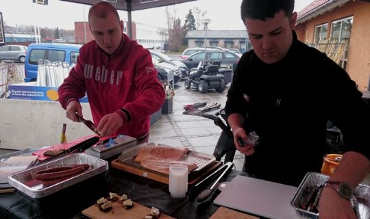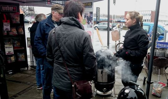 Sammen med repræsentanter for Weber blev der lørdag serveret pølser, laks og ost og mørbrad.