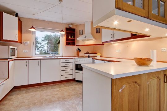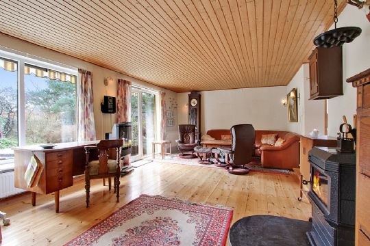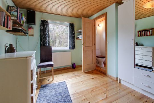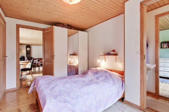 Huset indeholder entré, køkken med kig til havet, spisestue, badeværelse med toilet, opholdsstue med plankegulv samt udgang til terrassen og haven, to soveværelser, gæstetoilet med adgang fra begge soveværelser og gæsteværelse med udgang til haven samt lille fyrrum med fjernvarmeunit.