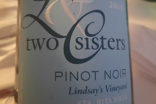 Two Sisters er duft, saft og kraft – til 70 kroner pr glas derhjemme.California wines Lindsay's Vineyard Pinot Noir ”Two Sisters” fra Californien smagte himmelsk, og jeg tænkte på de gode fra Bourgogne, ikke mindst på grund af den lidt lyse farve, men gættede ikke ophavslandet, selv om medbringeren tidligere har haft vin med fra ”over there”. Lidt tør men blød i smagen, elegant og kraftig er den, og den må være en udfordring for den meget roste Pinot Noir fra Pegasus Bay i New Zealand (