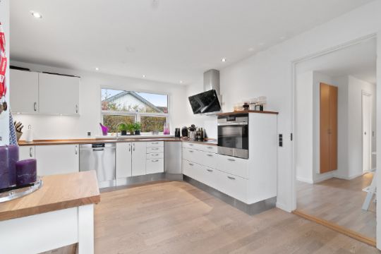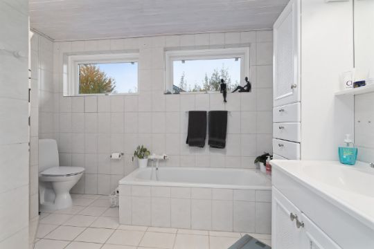 I flere af boligens værelser er der indbyggede skabe og generelt gode muligheder for opbevaring, ligesom bryggerset også er en praktisk tilføjelse.