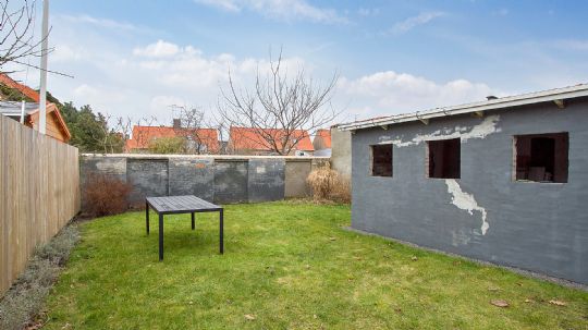 Huset har også en mindre kælder og en muret udhusbygning og gænge til gaden.