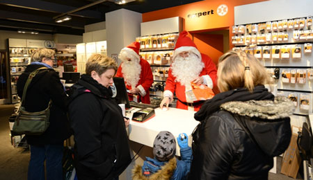 Der er tradition for en god julehandel - med overraskelser...Mikkel Skot-Hansen nævner, at kirkekoret synger julen ind i butikkerne og KFUM Spejderne sælger æbleskiver på Nexø Torv, Skt. Georgsgilde har tombola på torvet og der er ildshow med gøglertruppen Trup Ting Tang.