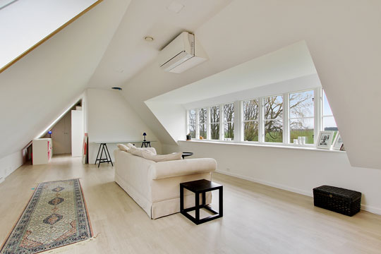 På 1 sal er stor stue med kvist og et depot er forberedt som gæstetoilet. Desuden er der to walk in closet og stort soveværelse med udgang til vestvendt terrasse og børneværelse samt stort uudnyttet loftrum.