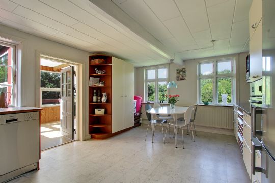 Boligarealet tæller 150 kvadratmeter fordelt på halvandet plan, der rummer to store stuer, som blev renoveret i 2012, spisekøkken, badeværelse og en udestue. På førstesalen findes tre gode værelser med et skønt lysindfald. Derudover byder villaen på en hyggelig terrasse med eftermiddagssol og kig til solnedgangen.