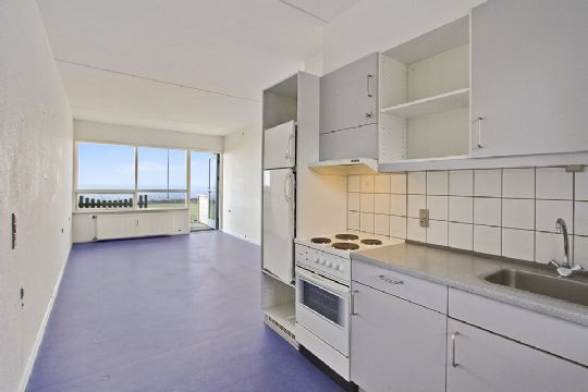 Boligarealet er på 50 m² og har entré, badeværelse, kombineret stue/køkken/værelse med udgang til terrasse mod havet.